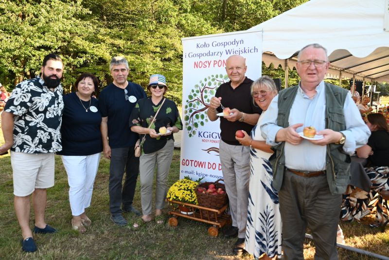 Gospodynie i Gospodarze Wiejscy z Nosów Poniatek serwowali na swoim stoisku przepyszne dania i napoje. Daniem głównym było oczywiście słynne w całym regionie pieczone jabłko. Ten frykas terenów sadowniczych Nosy Poniatki kosztowali wszyscy zaproszeni goście wydarzenia, wśród których znaleźli się: burmistrz Mszczonowa Łukasz Koperski, proboszcz Parafii Lutkówka ks. prałat Zbigniew Chmielewski, przewodnicząca Rady Powiatu Żyrardowskiego Beata Rusinowska, radni powiatowi Beata Sznajder i Zdzisław Banasiak, Grzegorz Obłękowski – dyrektor Mazowieckiego Zarządu Dróg Wojewódzkich w Warszawie, wiceprzewodniczący Rady Miasta Żyrardowa Krzysztof Skrobisz oraz redaktor naczelny „Życia Żyrardowa” Tadeusz Sułek. Wszystkich przybyłych witali osobiście przedstawiciele KGiGW Nosy Poniatki – Małgorzata Słojewska oraz państwo Irmina i Piotr Słojewscy.