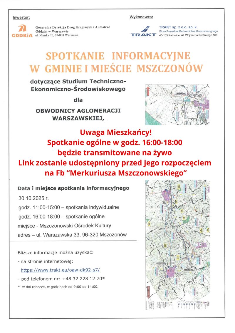 Spotkania z mieszkańcami naszej gminy Generalna Dyrekcja Dróg Krajowych i Autostrad zorganizuje w Mszczonowie w czwartek, 30 października: